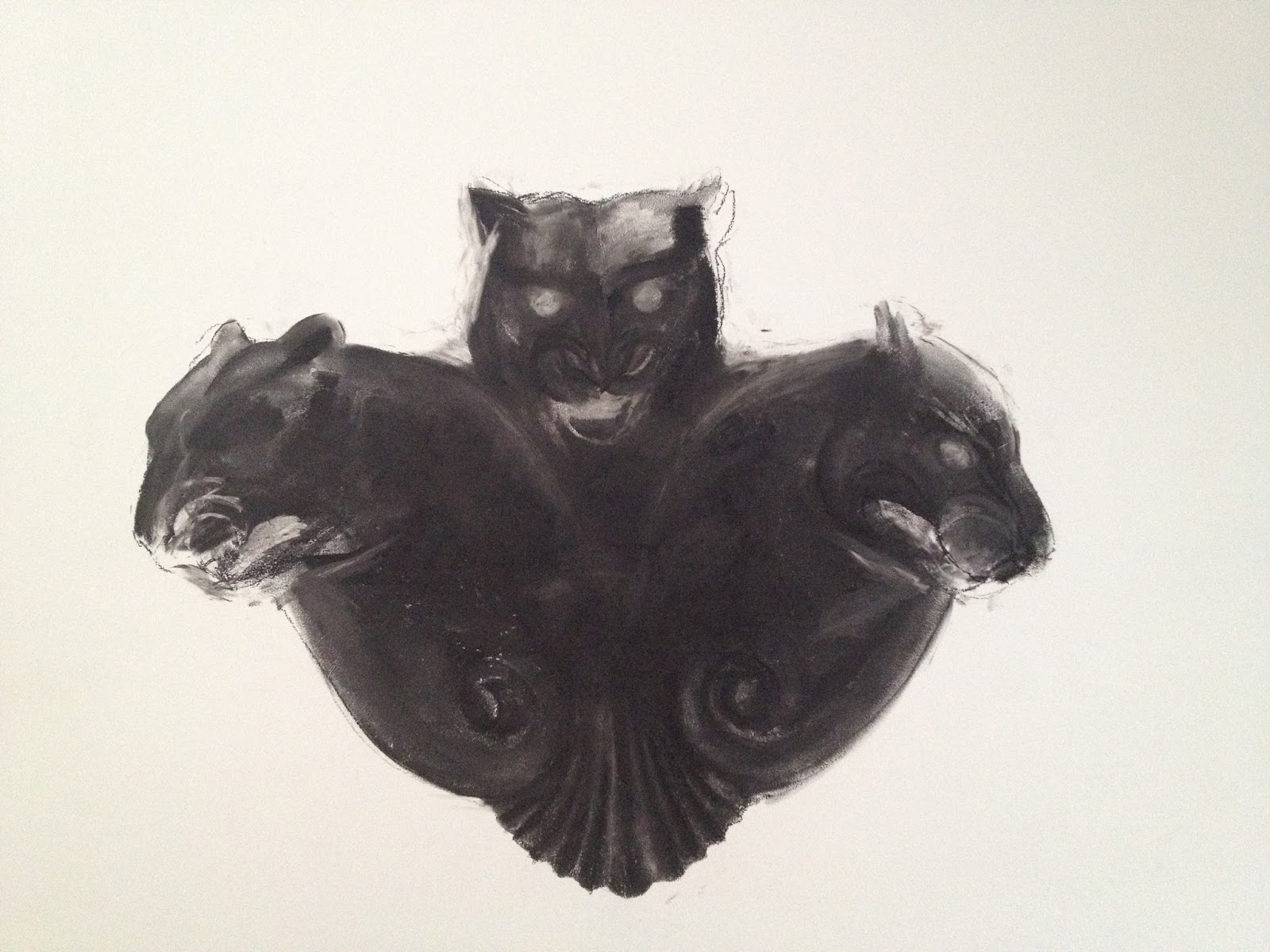 Temos, portanto, distribuídos pelos cômodos da Casa Contemporânea (edifício esse que foi por longo tempo a residência de uma família com ascendência espanhola) uma colcha de retalhos de modos de distanciamento e aproximação de figuras paternas e espaços anteriores de residência. Alguns de nossos pais tem rosto, outros tem mãos habilidosas para a costura e para seguir as linhas de páginas de livros. Algumas de nossas casas tinham quintais para acúmulos de objetos por décadas, outras tinham buracos na parede que precisavam ser tampados com cartazes publicitários. O som e o cheiro da panela de pressão ativa a memória de uns, ao passo que o sal grosso sai da cozinha e é matéria para a escultura que é a passagem do tempo. Por sete vezes uma mãe recebeu as chaves de seu novo lar e este também foi o número de desenhos feitos por um rapaz a observar os cômodos de sua casa por diferentes perspectivas. Uma foi a parede destruída de uma casa para que, um dia, dois cômodos se convertessem em outro um - mas o rastro da queda permanece.