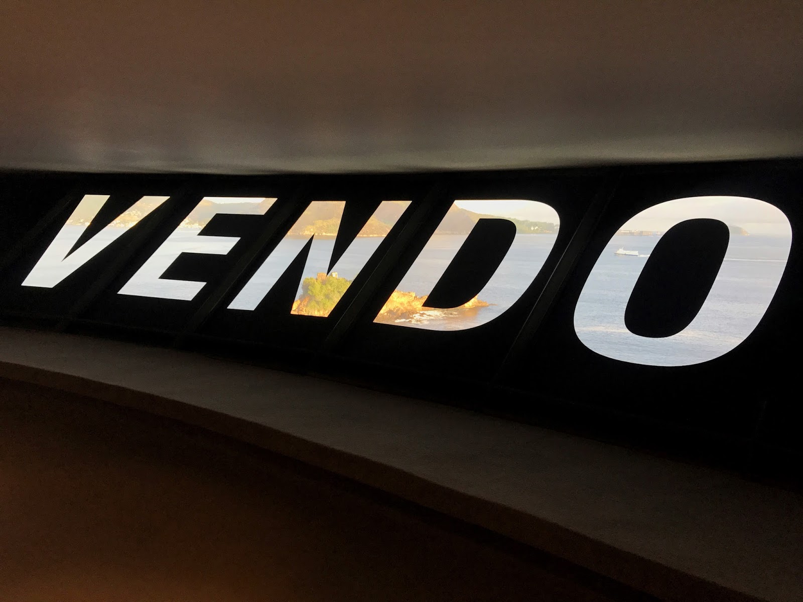 Nesse projeto, Marcos Chaves dá prosseguimento à experimentação de cerca de duas décadas que faz a partir de uma simples frase: “Eu só vendo a vista”. Um jogo de significados possíveis é entregue ao público que pode ler tanto uma sugestão do voraz mercado imobiliário no estado do Rio de Janeiro, quanto ao ato de se “vendar” (tapar) a paisagem ao redor. Além disso, essa “vista” se refere a uma forma de pagamento ou à visão panorâmica criada pelo encontro entre a natureza e a herança da arquitetura modernista?