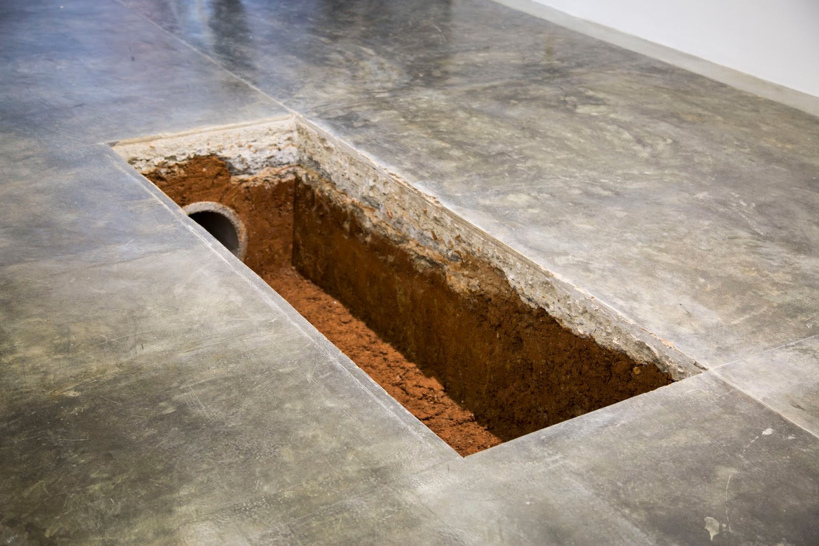 As obras aqui apresentadas se utilizam de alguns desses elementos que podem ser notados desde as opções de materiais feitas – elementos industriais como alumínio e o concreto são ladeados por peças feitas em materiais orgânicos, mas não exclusivamente artesanais, como o couro e os têxteis. Um buraco traz ao público aquilo que o concreto que dá a tonalidade cinza da galeria esconde: a presença da terra vermelha que em algum momento da História de São Paulo tinha contato direto com os pés dos habitantes. A assepsia do sistema de esgoto e irrigação da cidade se faz presente no uso de um tubo de concreto encaixado neste buraco - uma fabulação por parte de Lecuona y Hernandéz quanto ao passado do edifício.